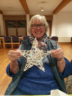 Gar nicht so einfach. Ein bisschen Fingerfertigkeit wurde schon gebraucht. Aber mit der Unterstützung der "Fachfrauen" konnte jede von uns ein paar fertige Sachen mit nach Hause nehmen.